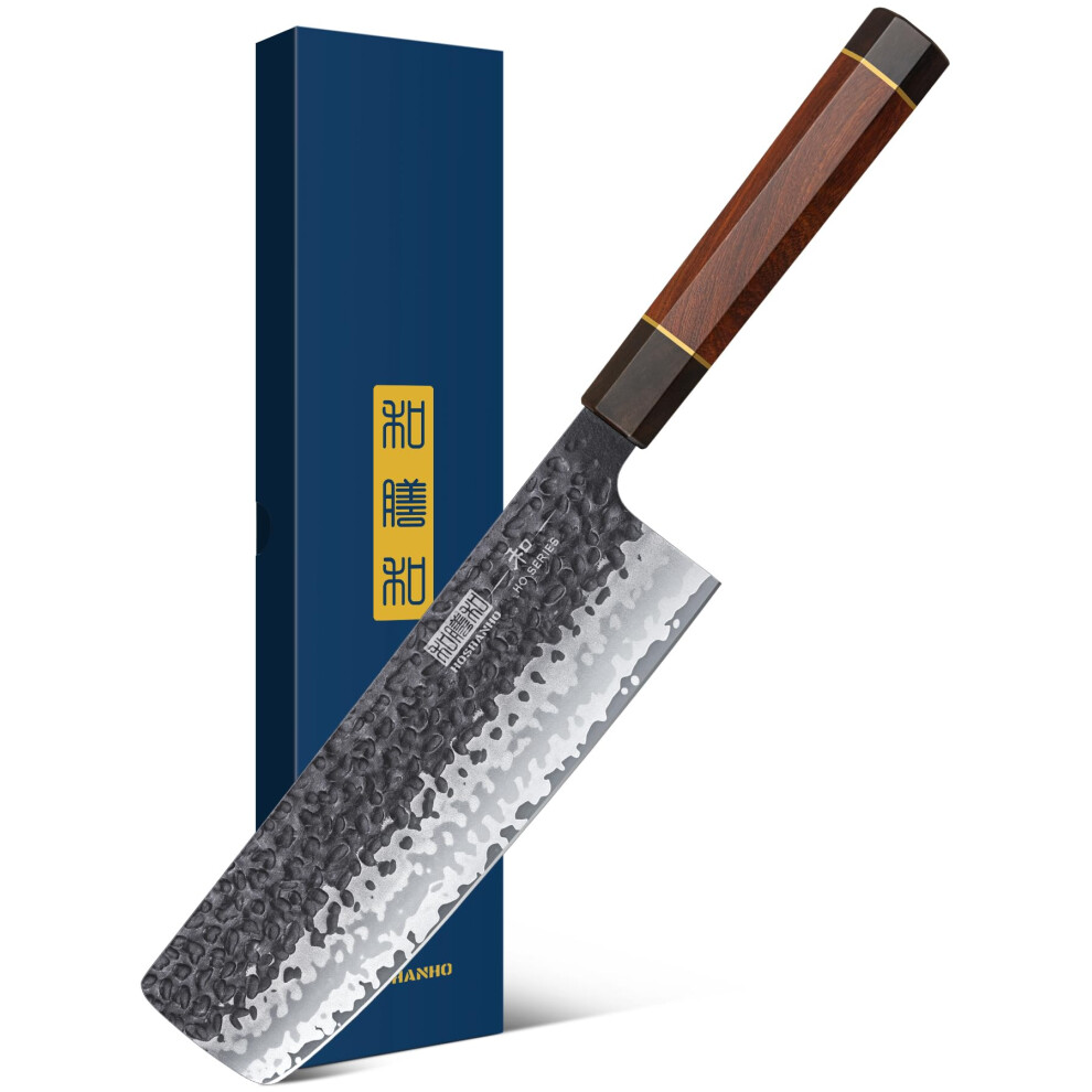 HOSHANHO 7 Inch Nakiri Knife, Japanese Hand Forged Asian Chopping Chef Knife, Professional Meat Vegetable Cleaver Kitchen Knife with Ergonomic Handle
