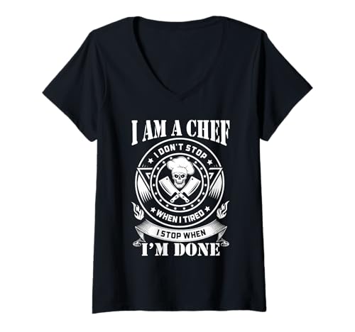 Women's Chef Skull Cleaver Kitchen Hustle Motivational Graphic V-Neck T-Shirt