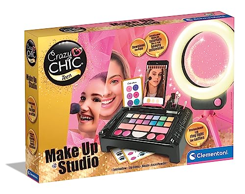 Clementoni- Crazy Chic Make-Up Studio: Illuminated Make-Up Set with Washable Cosmetics & Professional Brushes for Kids (6+ Years )