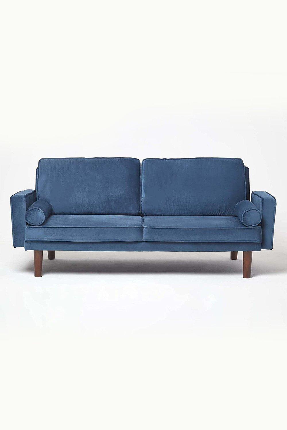 Bravich - Scandinavian Style Folding Three Seater Sofa/Click Clack Sofa Bed With Armrests. Versatile & Adjustable Sofa Bed For Living Room/Office With Fashionable Piping Detail - Sea Blue