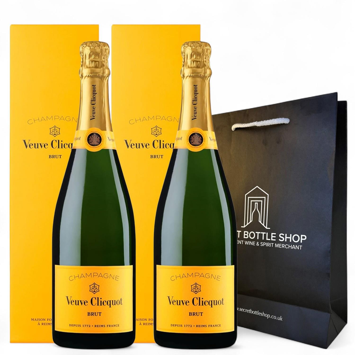 Veuve Clicquot Champagne Gift Boxed 2x75cl & Secret Bottle Shop Gift Bag