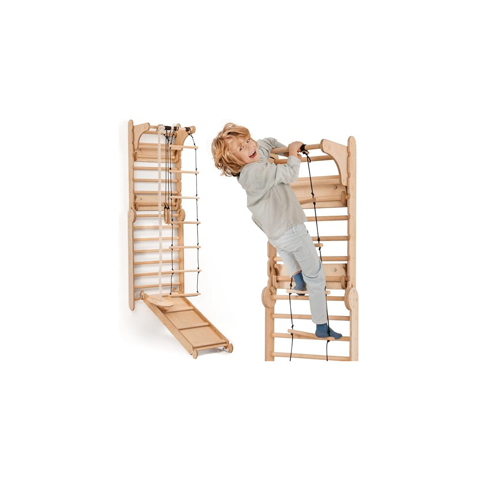 6-in-1 Wooden Swedish Wall & Slide Set ? Versatile Indoor Climbing Frame for Kids, Includes Ladder, Slide Board, and Monkey Bars ? For Ages 2-12