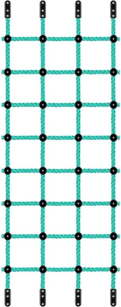 Climbing Frame Net For Kids, Nylon Climbing Cargo Webbing Net Rope Ladder For Outdoor Playset, 57 X 72.8 Inch Playground, Treehouse Obstacle Course Training Accessories With 5 Triangular Hooks