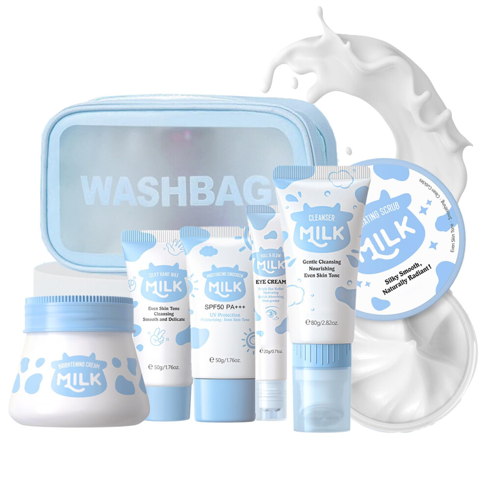 7PCS Milk Skincare Set -Mothers Day Gifts -Gifts For Teenage Girls - Skin Care Sets & Kits With Cleanser,Eye Cream,Exfoliating Scrub, Sunscreen,Hand