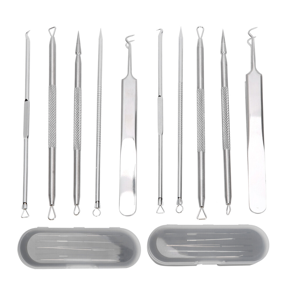 Professional Extraction Tools Stainless Steel Acne Extractors Set with Anti Slip Handle Blemish Remover Blackhead Removers Including Ingrown Hair Twe