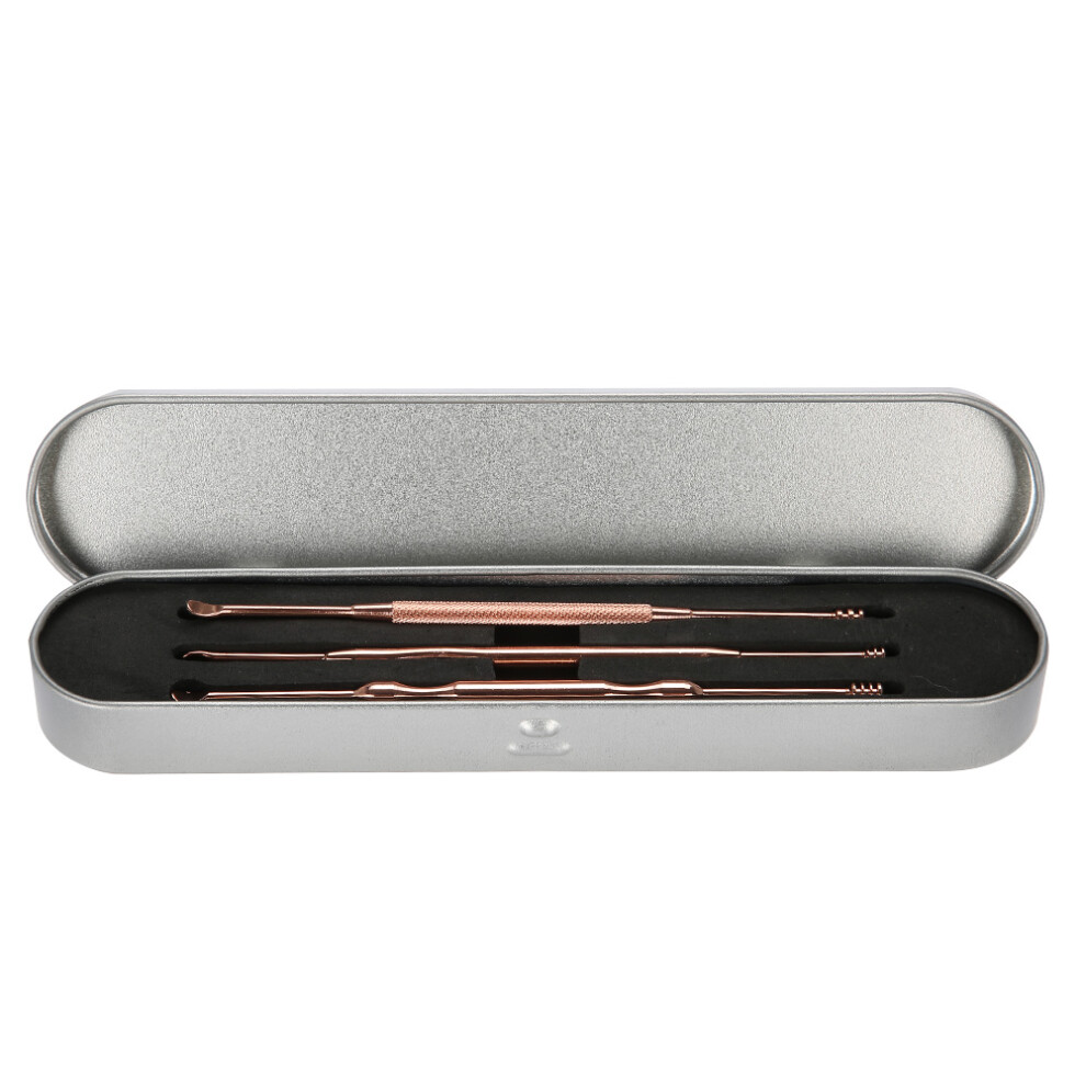 Anti-Slip Design Blemish Extractor, Skin Blemish Removal Tool Kit, Ergonomic Handle, Stainless Steel Coating, Premium Materials, Rose Gold, 3Pcs/Set