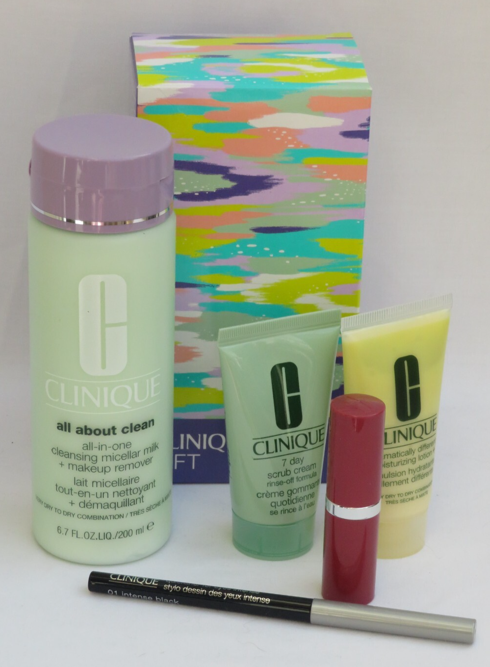 CLINIQUE Kit ❤️ Micellar Milk. Moisturizer. Scrub. Eyeliner. Lipstick ❤️ BNWB