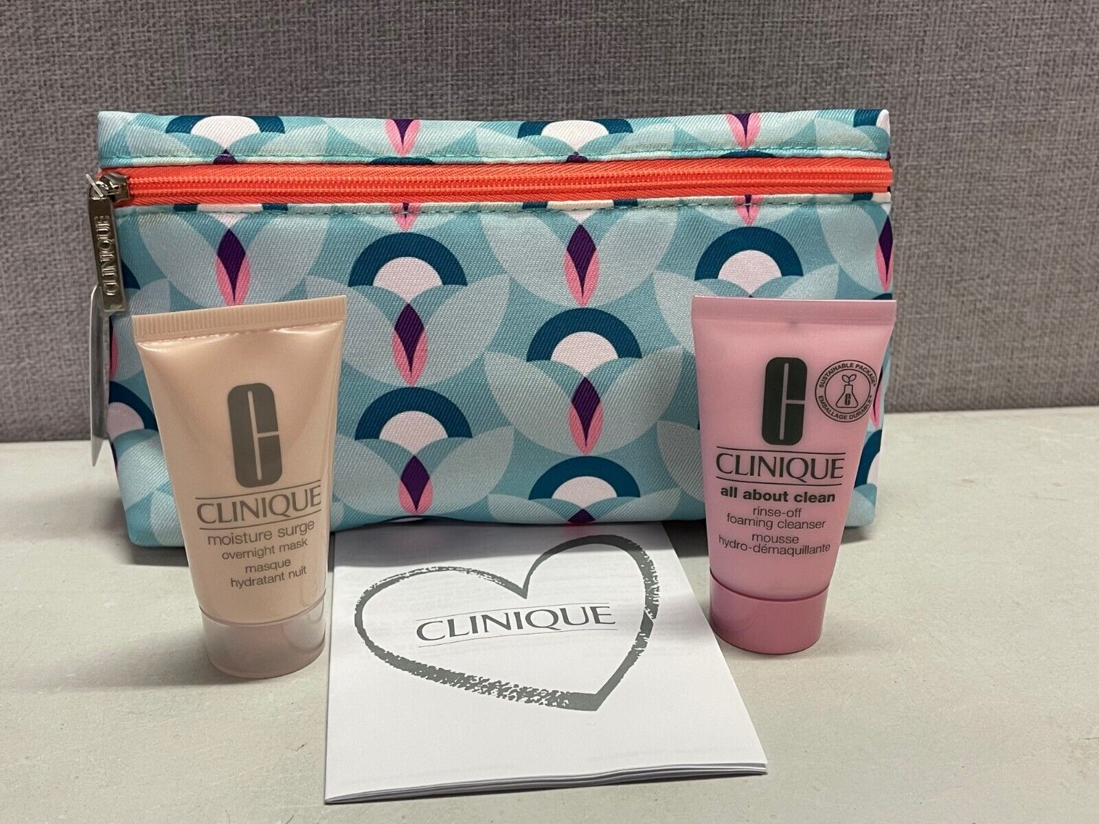 clinique gift set- Makeup bag & overnight mask 30ml / rinse off Cleanser 30ml