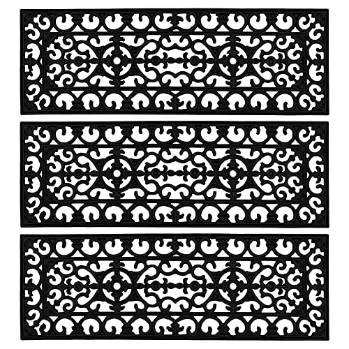 JVL Lexi Wrought Iron Effect Rubber Step Mat, 25x75cm, Set of 3