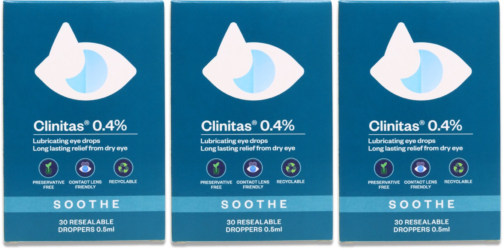 3 X Clinitas Soothe 0.4% Perservative Free Eye Drops 30 x 0.5ml | Dry Eyes