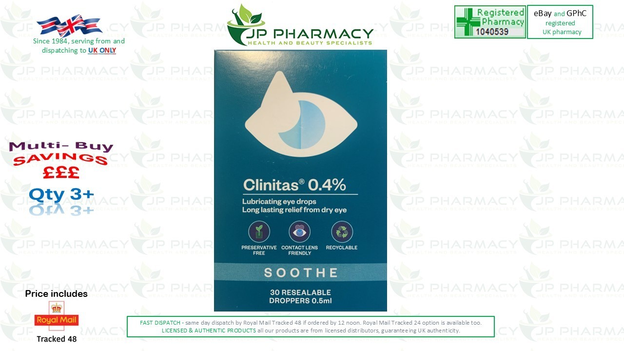 Clinitas Soothe 0.4% Perservative Free Eye Drops 30 x 0.5ml | Dry Eyes X 3