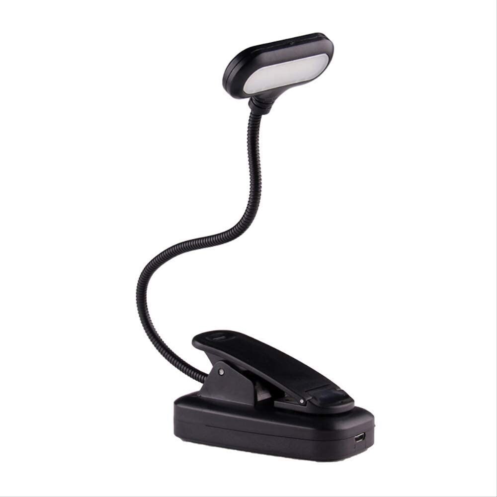 (Black)LED Desk Lamp Double Headed USB Rechargeable Clip Table Lamp For