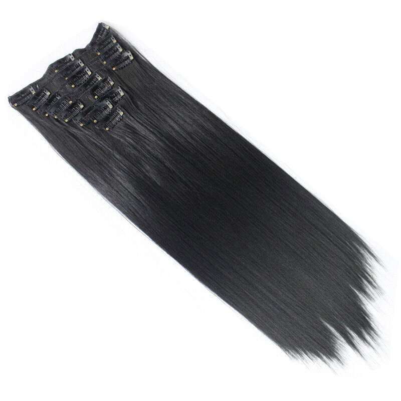 Clip in Hair Extensions Jet Black Straight 18" Full Head 8 Pcs 120g Synthetic