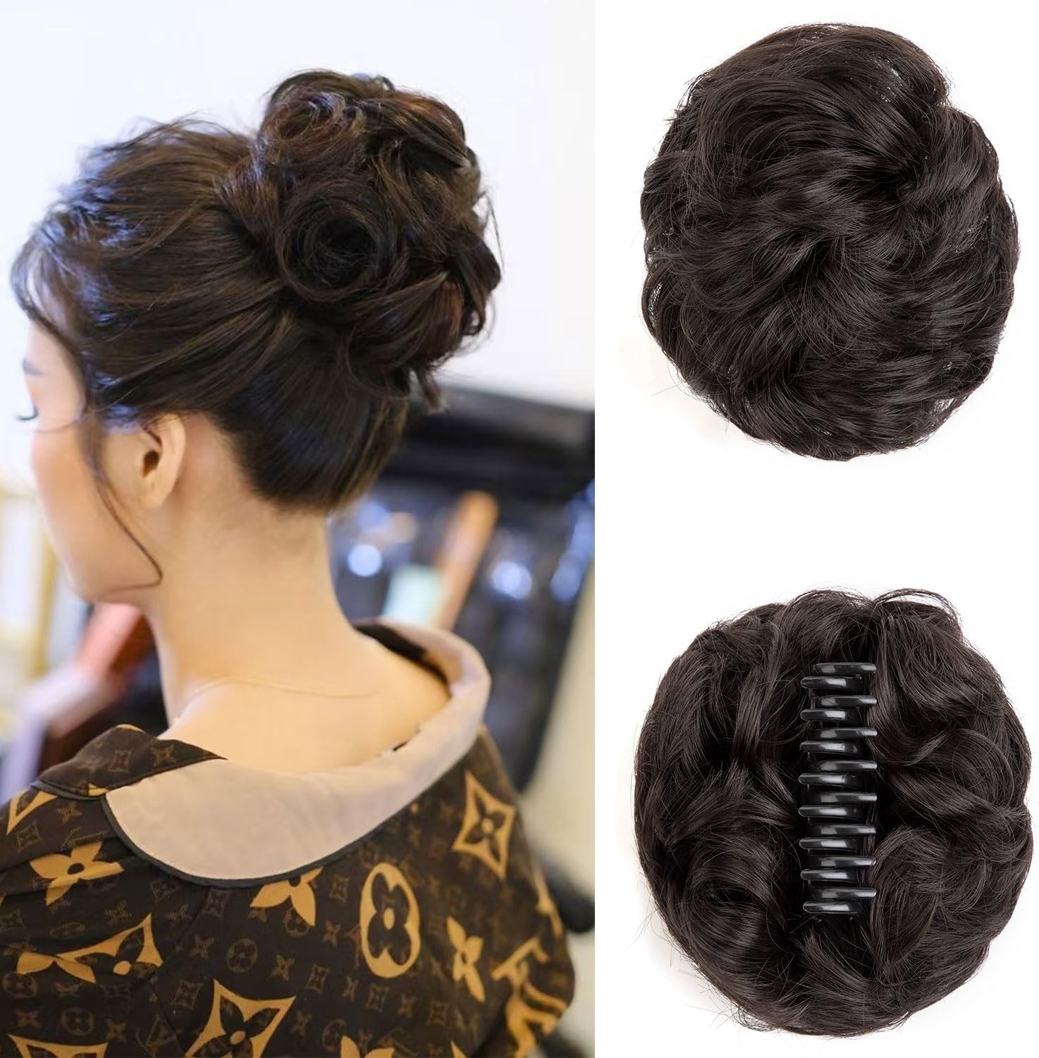 Claw Clip Messy Bun Hair Piece Wavy Curly Large Hair Bun Clip in Claw Chignon P