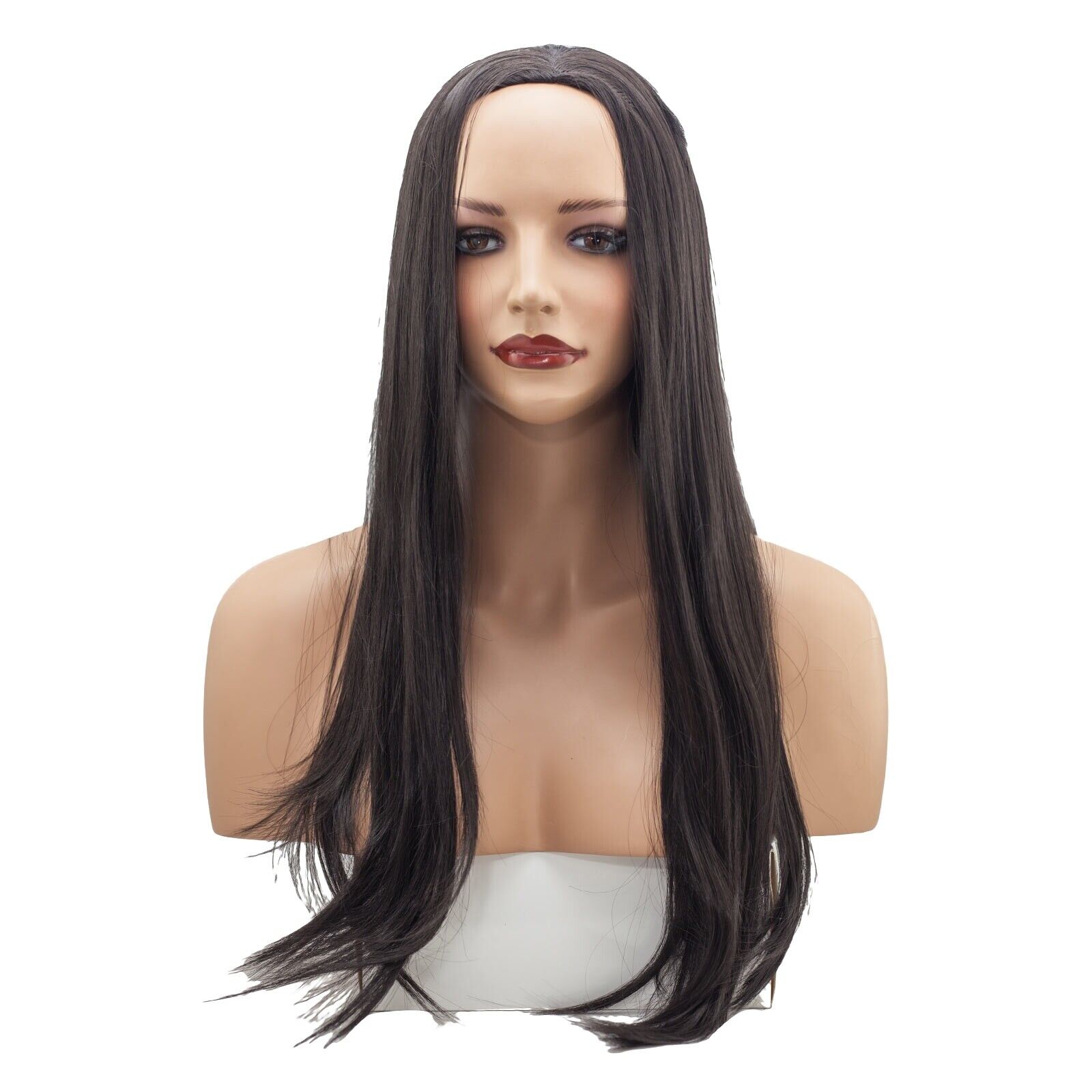 22" Ladies 3/4 WIG Clip In Hair Piece STRAIGHT Darkest Brown #2