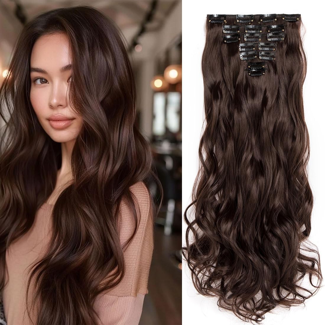 Clip in Hair Extensions Body Wave 22 inches 7Pcs 150g Straight Hair Synthetic H