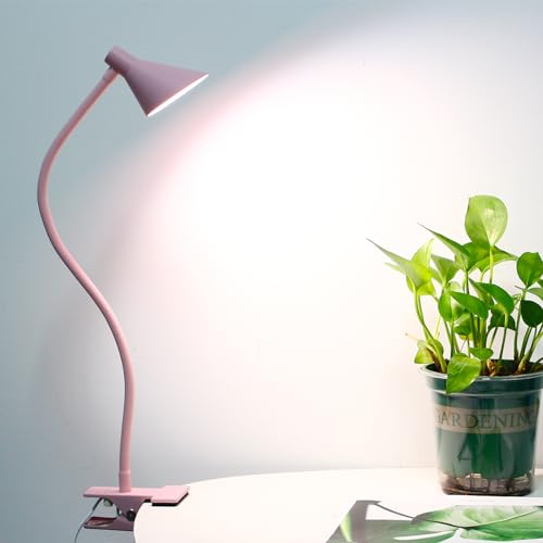 Lzonunl Pink Desk Lamp with Clip, 3 Light Modes & 10 Dimmable Brightness, Small Book Reading Light, Bedside Lamp for Office, Bedroom, Study, USB Plug-in