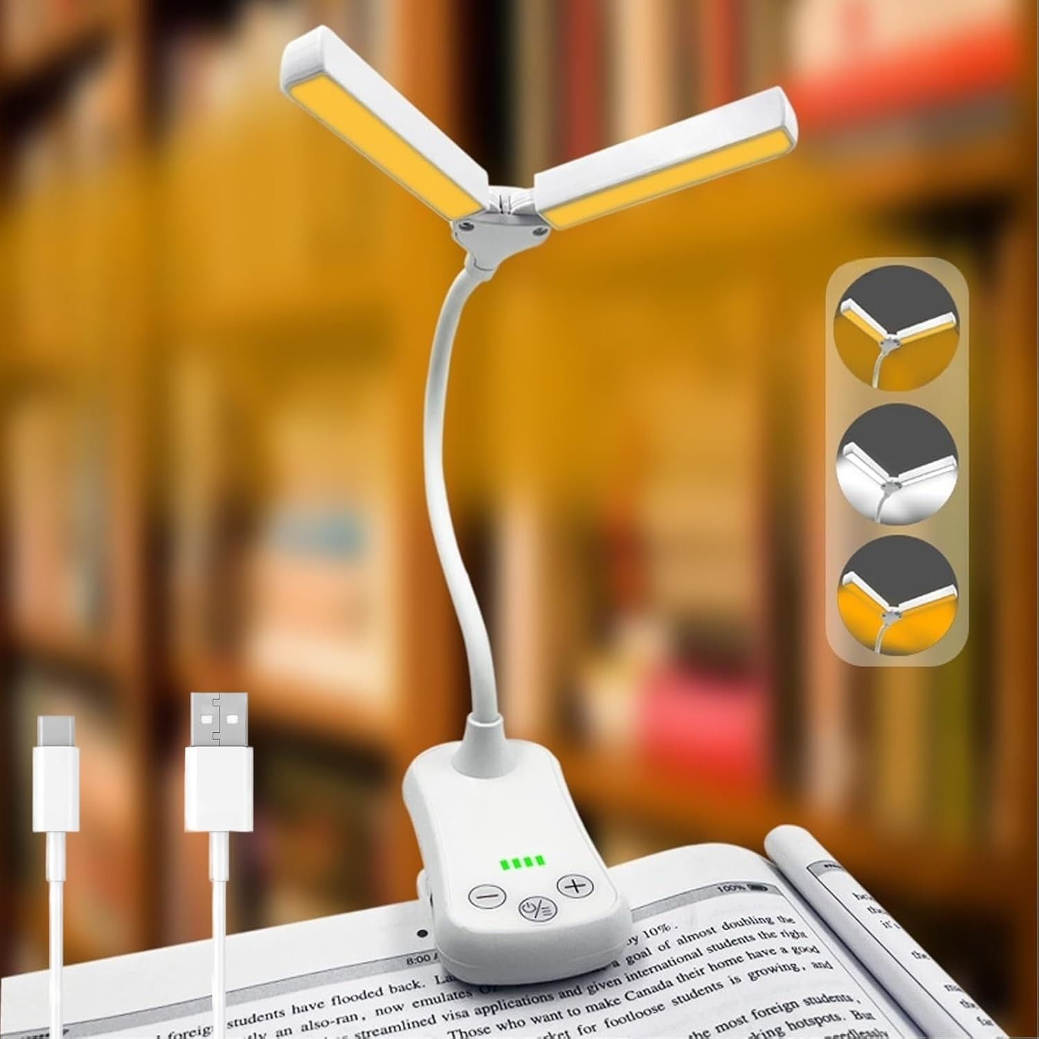 14 LED Rechargeable Book Light for Reading in Bed, Double-Headed Clip On Lamp w