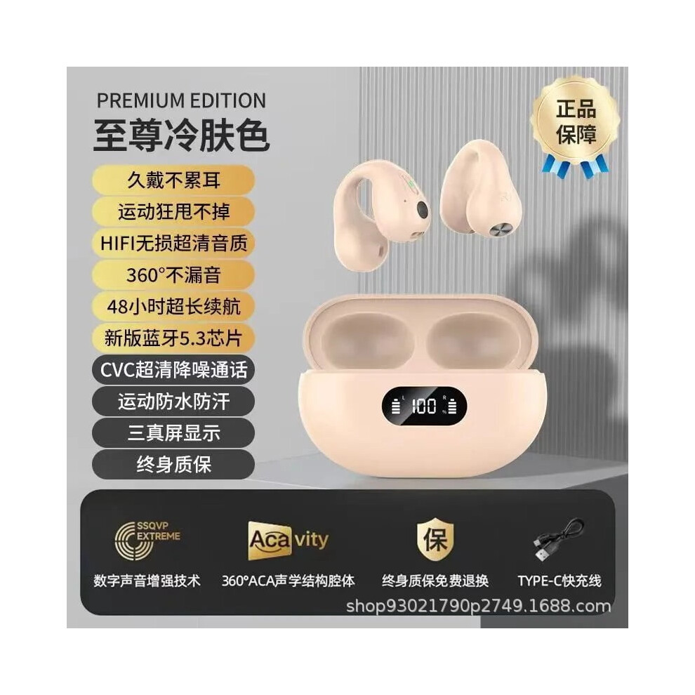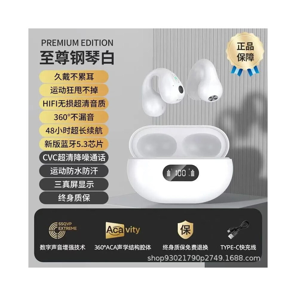 Non-in-ear clip-on earphones, bone conduction wireless Bluetooth earphones, ultra-long battery life, smart digital display