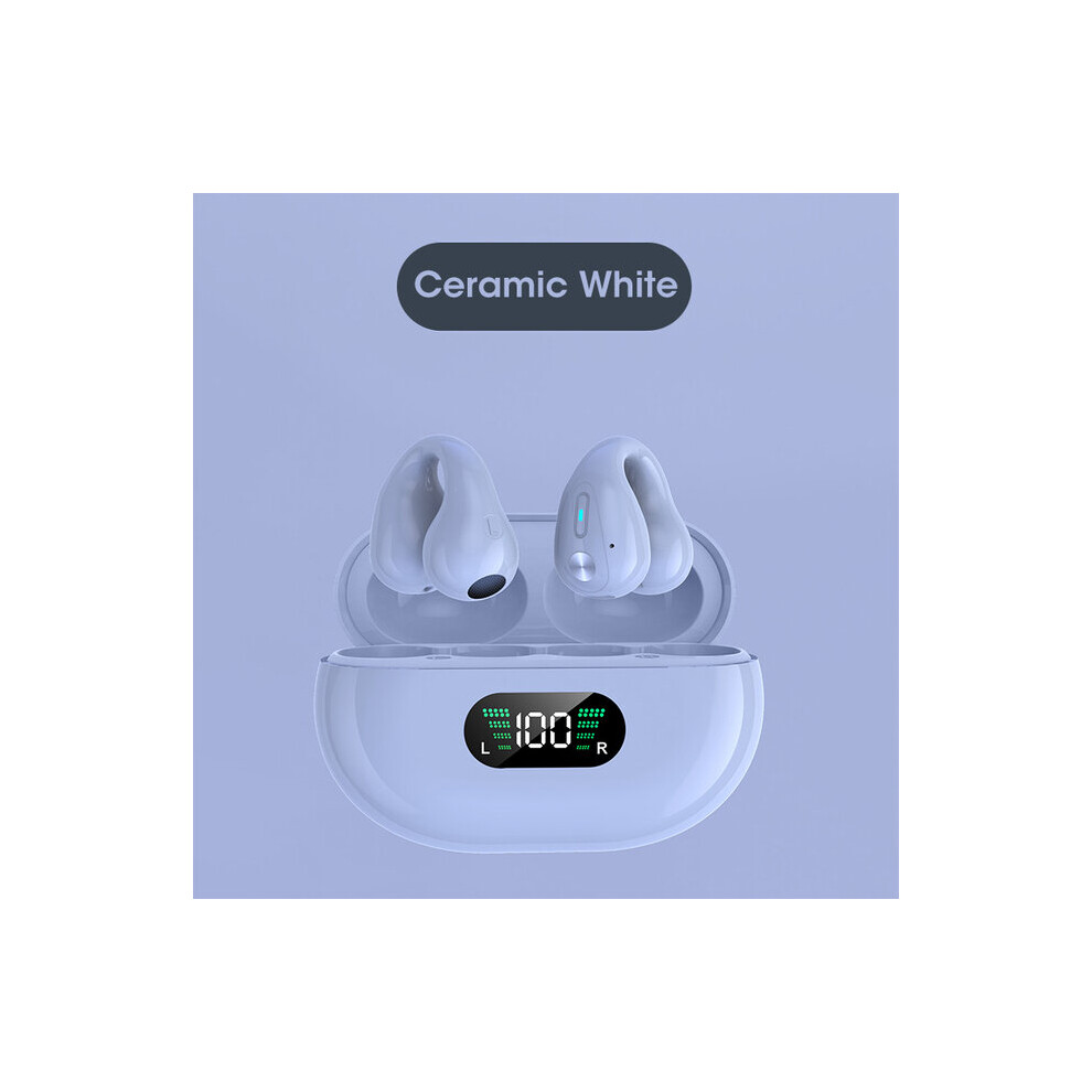 Open Ear Bone Conduction Clip-On Bluetooth Earphones, 36H Play, White