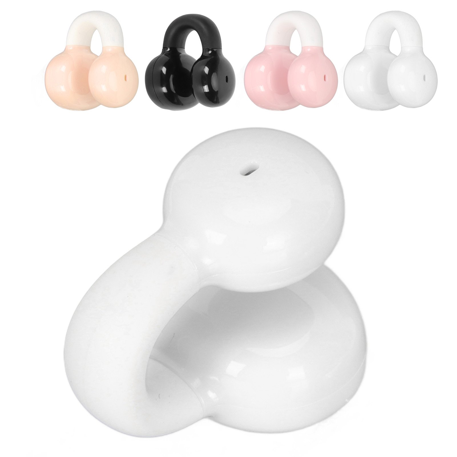 White BT Clip On Earphones HiFi Stereo Noise Cancelling Waterproof Clip On HEN
