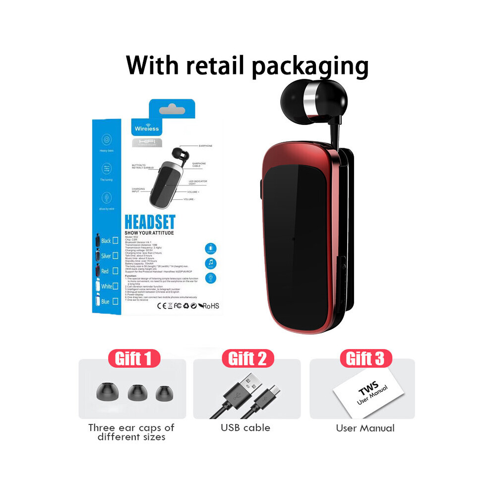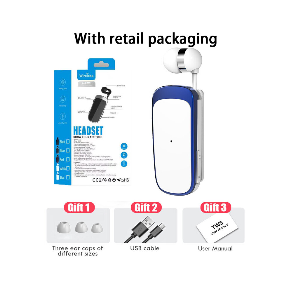 BT Clip On Earphones Stylish Mini HiFi Stereo Noise Cancelling Clip On Open HEN