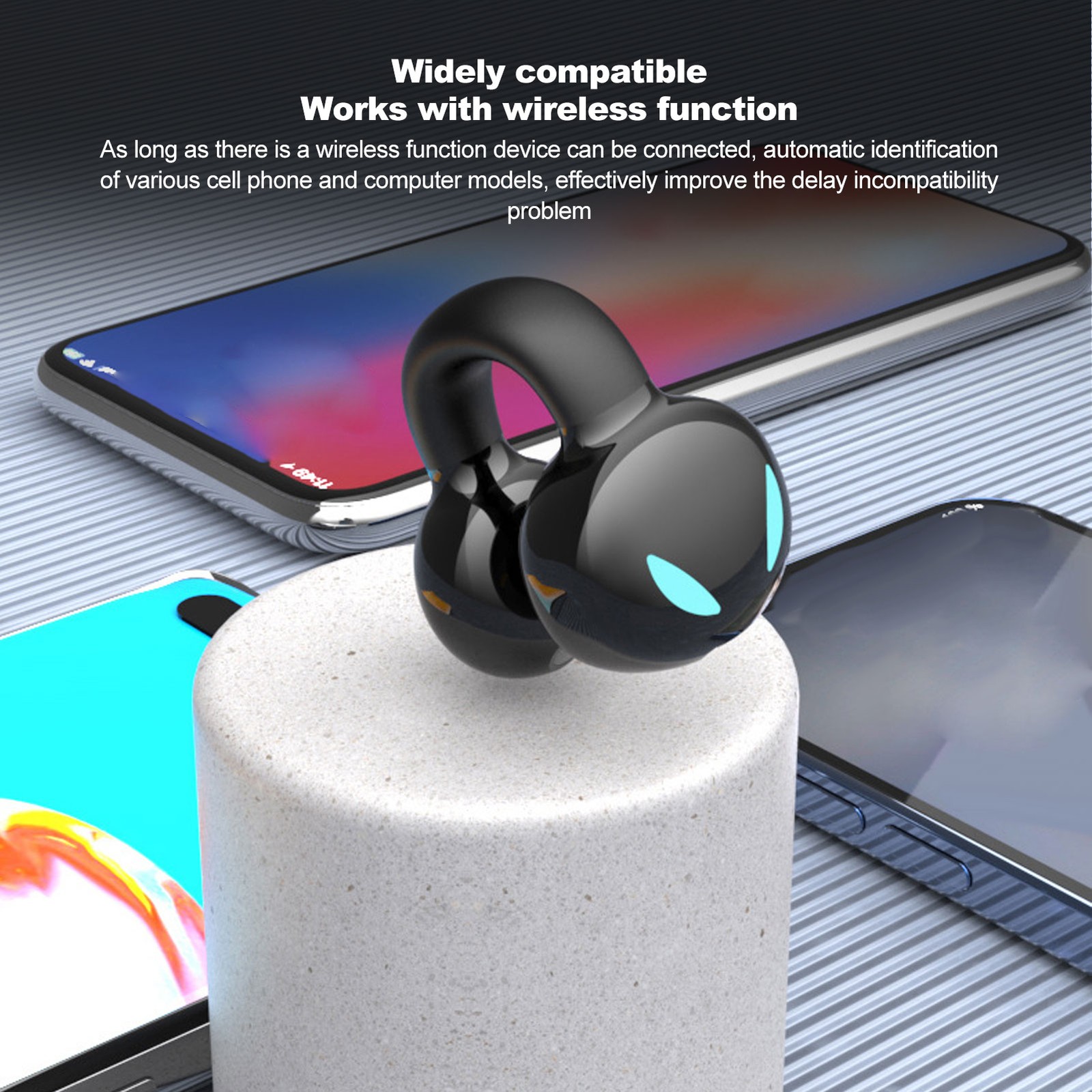 Black Clip On Wireless Earphones Open Ear Bluetooth 5.2 Bone Conduction Pain LW