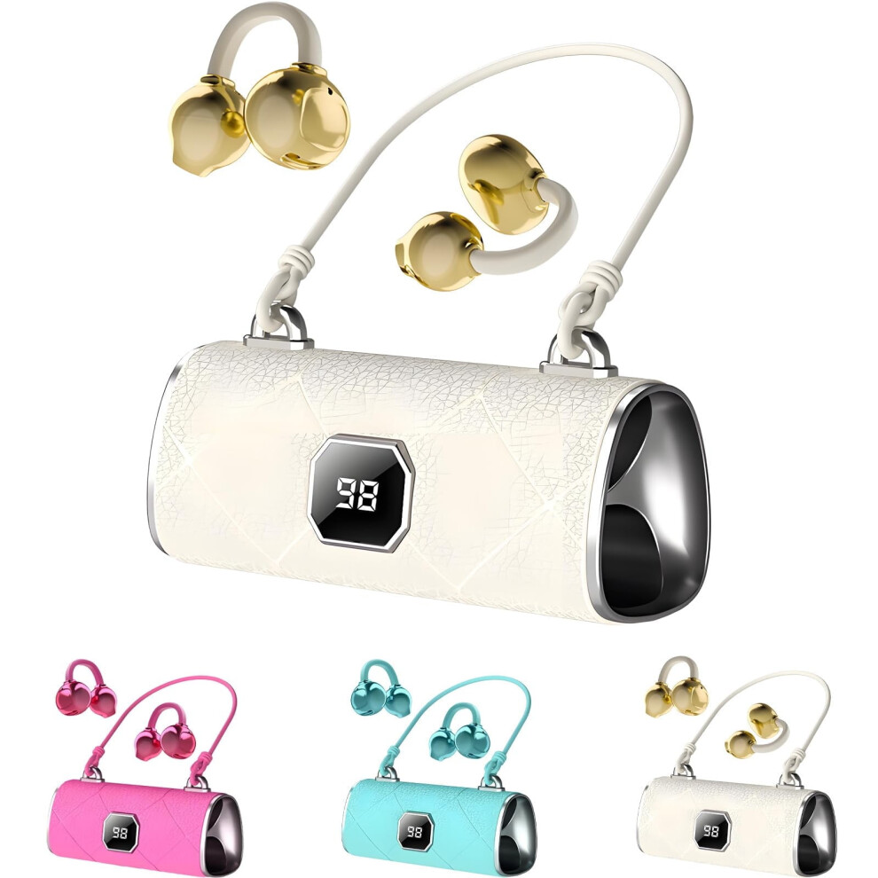 Fashionable Clip-On Wireless Headphones, Handbag-Style Clip-On Earphones, LED HD Display (White)