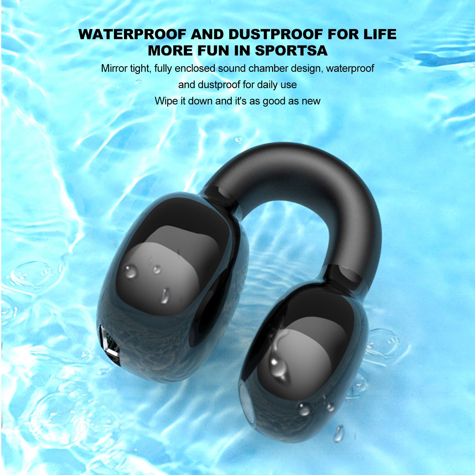 Wireless Bluetooth Headset Bone Conduction Clip-On TWS Earphones with Noise Reduction and Waterproof Design for Running
