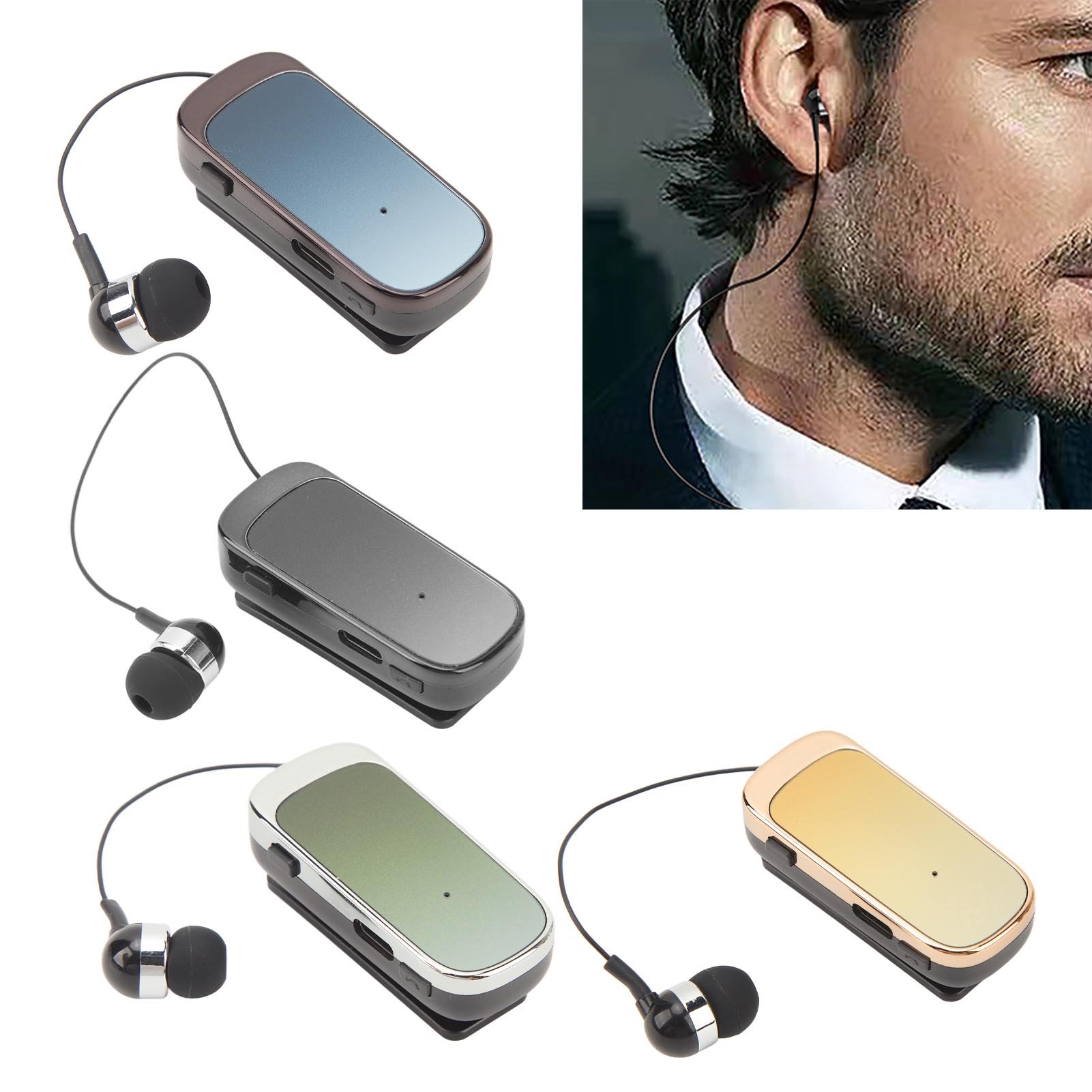 Retractable Wireless Headphones Bluetooth5.2 Earphones Clip On Earpiece