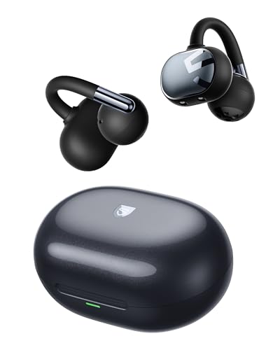 SoundPEATS Clip1 Open-Ear Bluetooth Earbuds, Clip-on Earphones with Dolby Audio, LDAC Hi-Res Wireless with 12mm Dual Magnet Driver, 40H Playtime, Ear Detection, IPX5 Waterproof Black