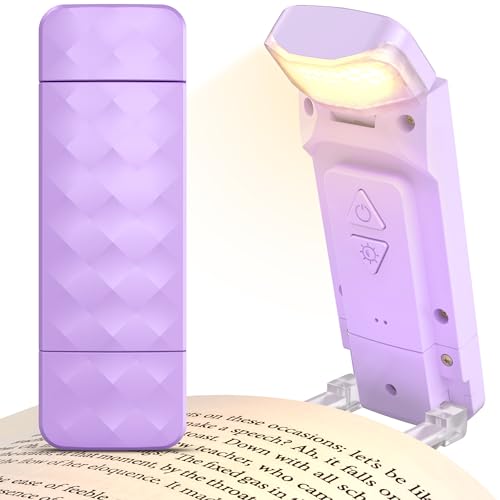 86lux Reading Light, Rechargeable Book Light for Reading in Bed, Ultralight Clip-on LED Bookmark Lamp with 3 Amber Colors & Stepless Dimming for Night Reading for Book Lovers, Kids,Soft Lavender