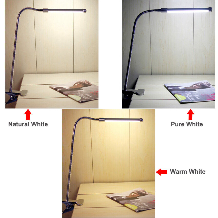 6W LED Table Clamp Clip-on Light Dimmable Picture Lamp Switch Plug USB Bedroom