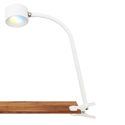 BRILONER - LED Clip On Light, Cordless Desk Lamp, Rechargeable, Portable, Detachable Head, Adjustable, 360-degree Rotation, Dimmable, CCT, Reading Light, Bedside Lamps, Study, 44 cm, White