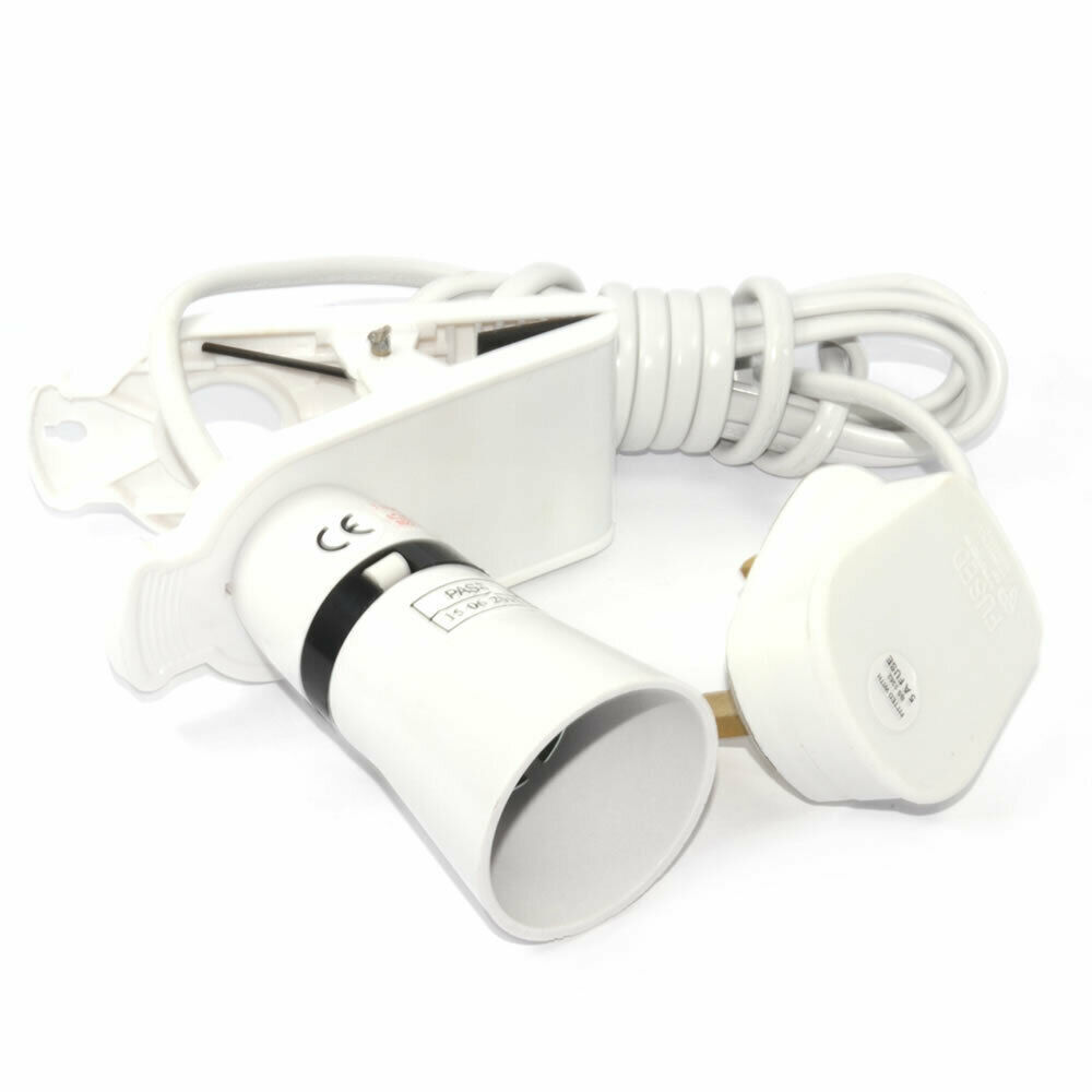 Clip On Light Switched Lamp Holder Bulb Holder Flex &UK Mains Plug - 2m