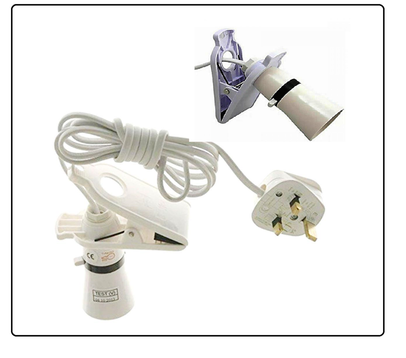 2M Clip On Light Switched Lamp Holder With Cable Holder Flex & UK Mains Plugs