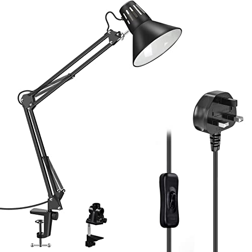 Milpoel Desk Lamp, Metal Swing Arm Table Lamp, Clip on Light, E27 Lamp Holder,