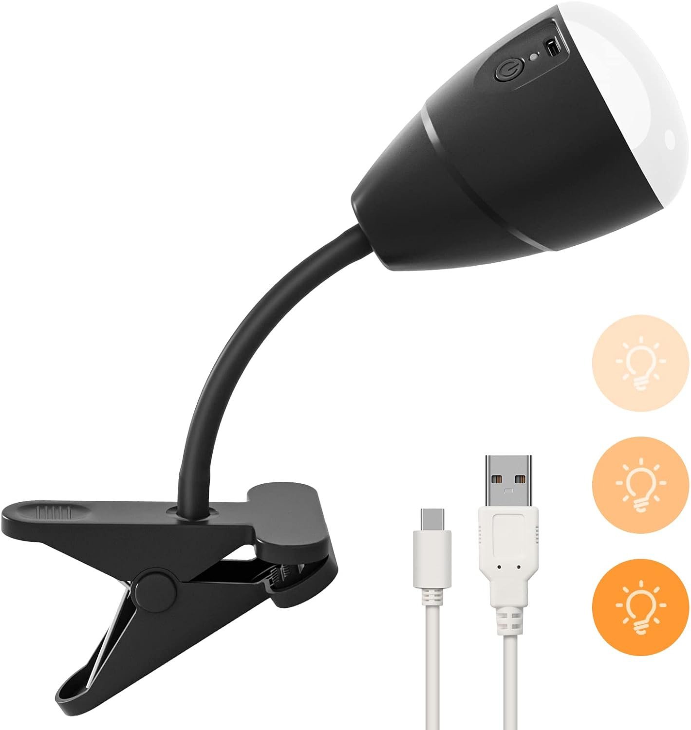 SIBI LIGHTING Clip On Light, Clip Lamp Mains Powered with Ultra Long-Lasting, USB Rechargeable, Eye Protect with 3 Dimmable Brightness Reading Lamp for Bedroom, Office, Bedside, Headboard