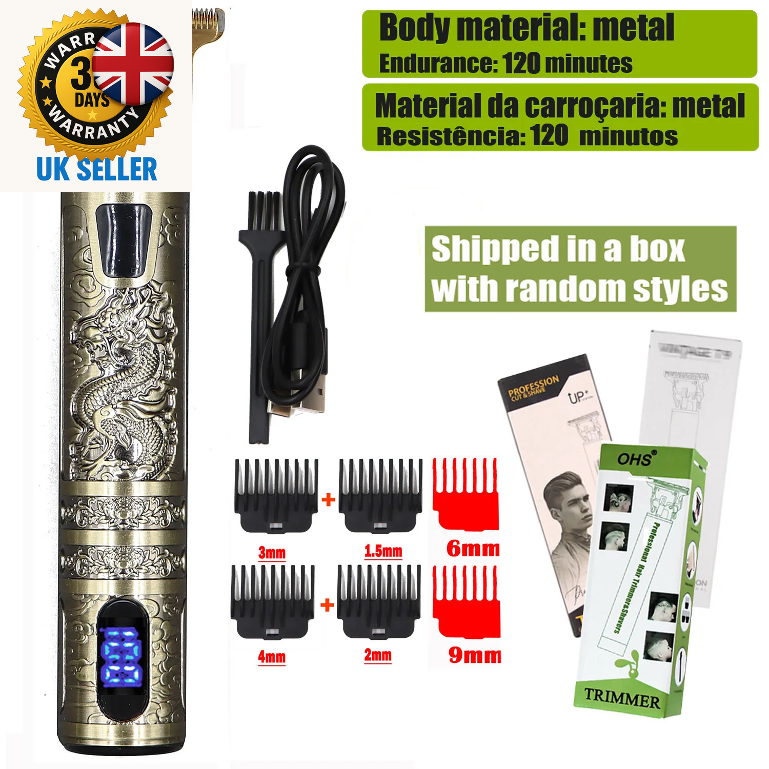 Electric Hair Clipper Vintage Metal Body High Power Low Noise Rechargeable H HG5