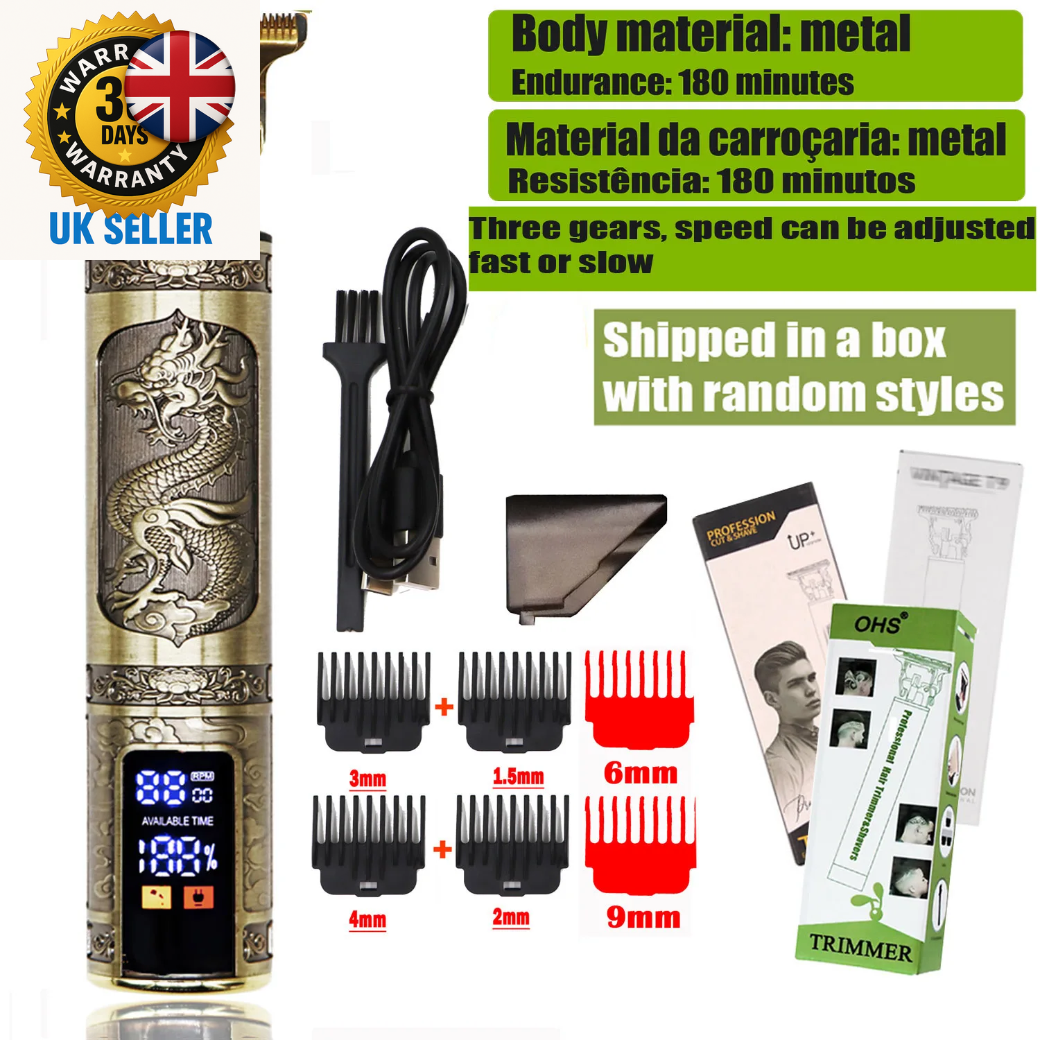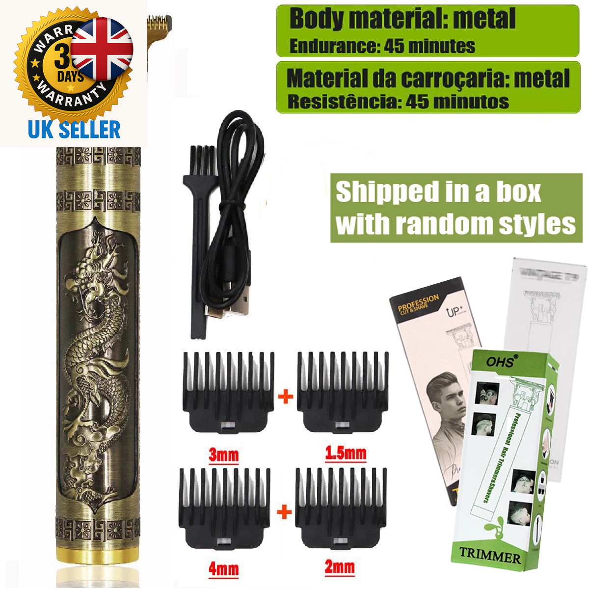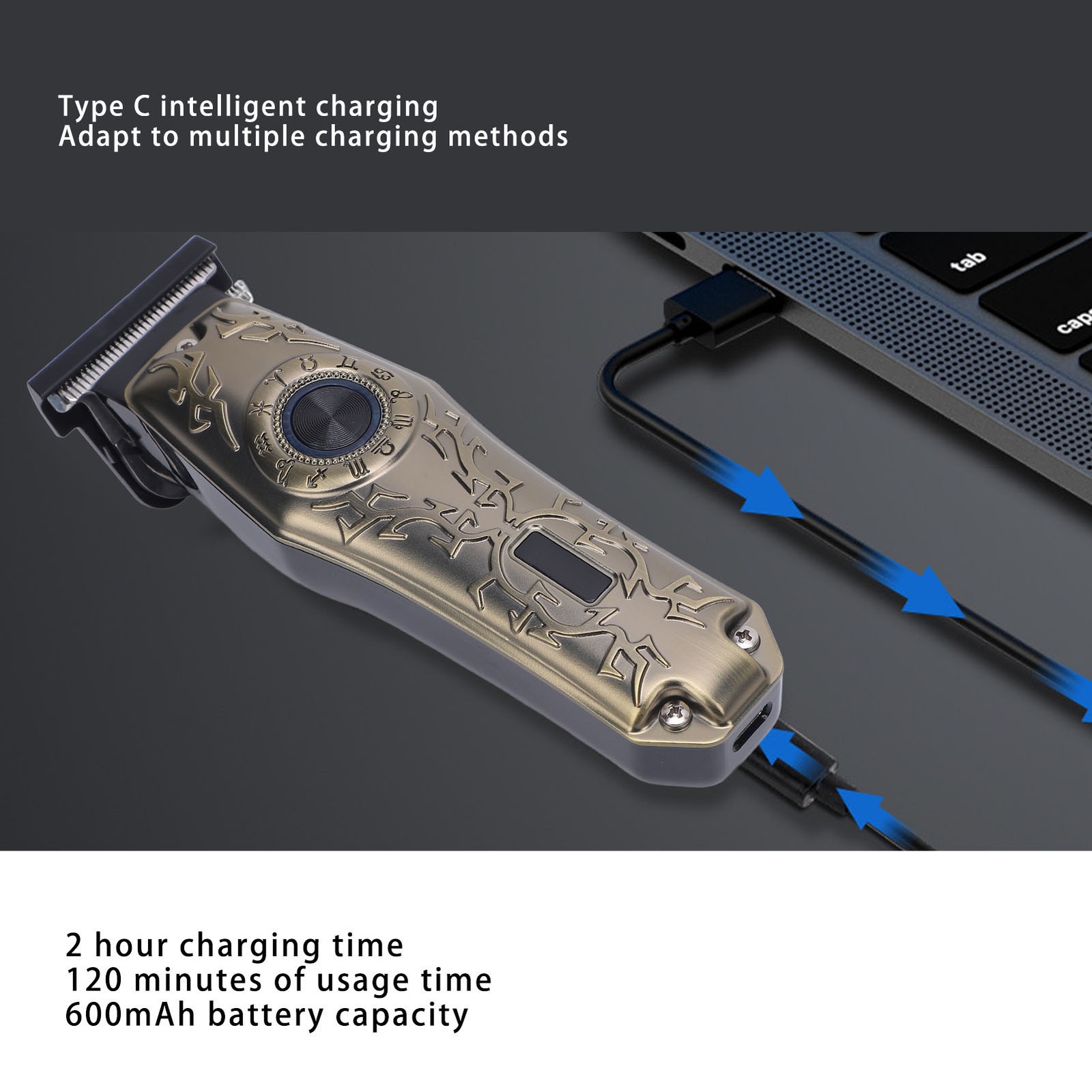 Electric Hair Clipper Vintage Metal Body High Power Low Noise Rechargeable H BAJ
