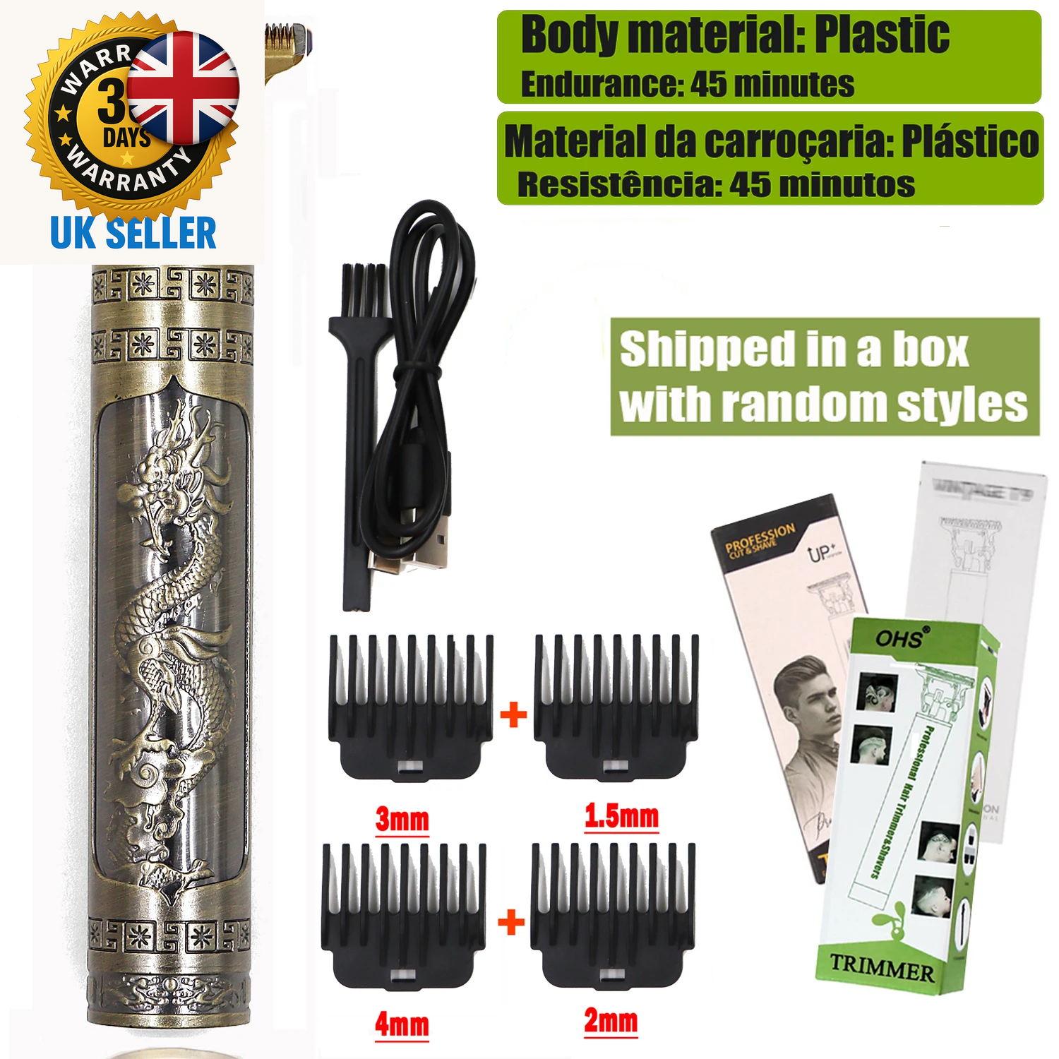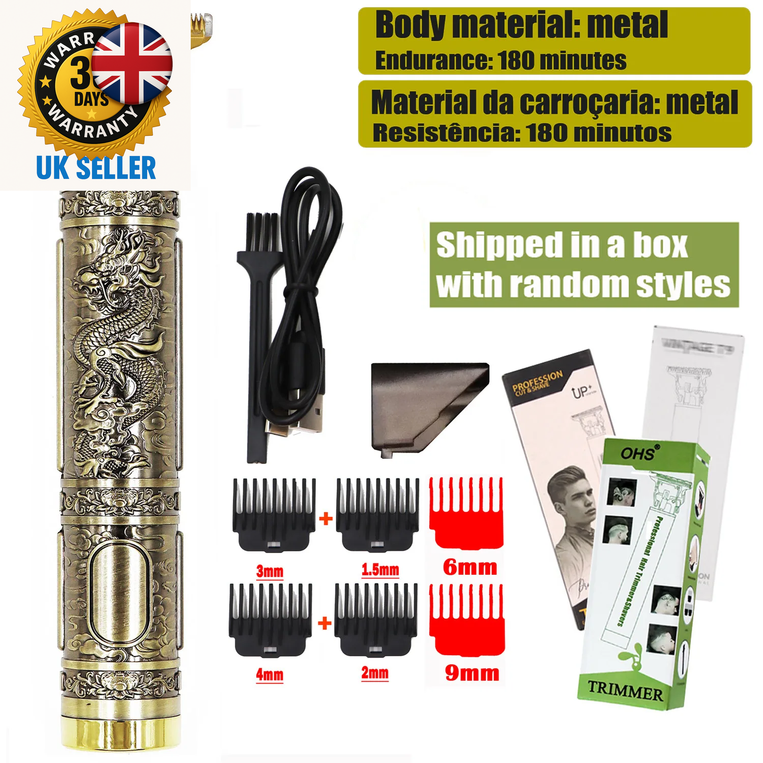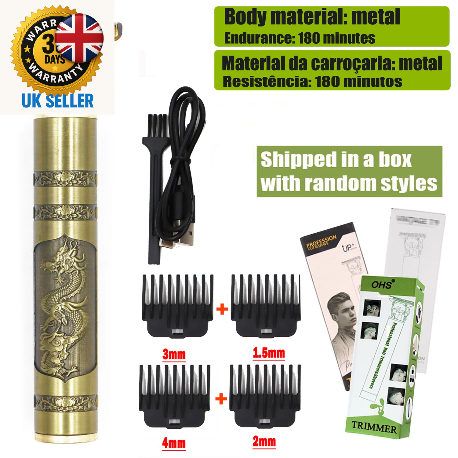 Electric Hair Clipper Vintage Metal Body High Power Low Noise Rechargeable H BAJ