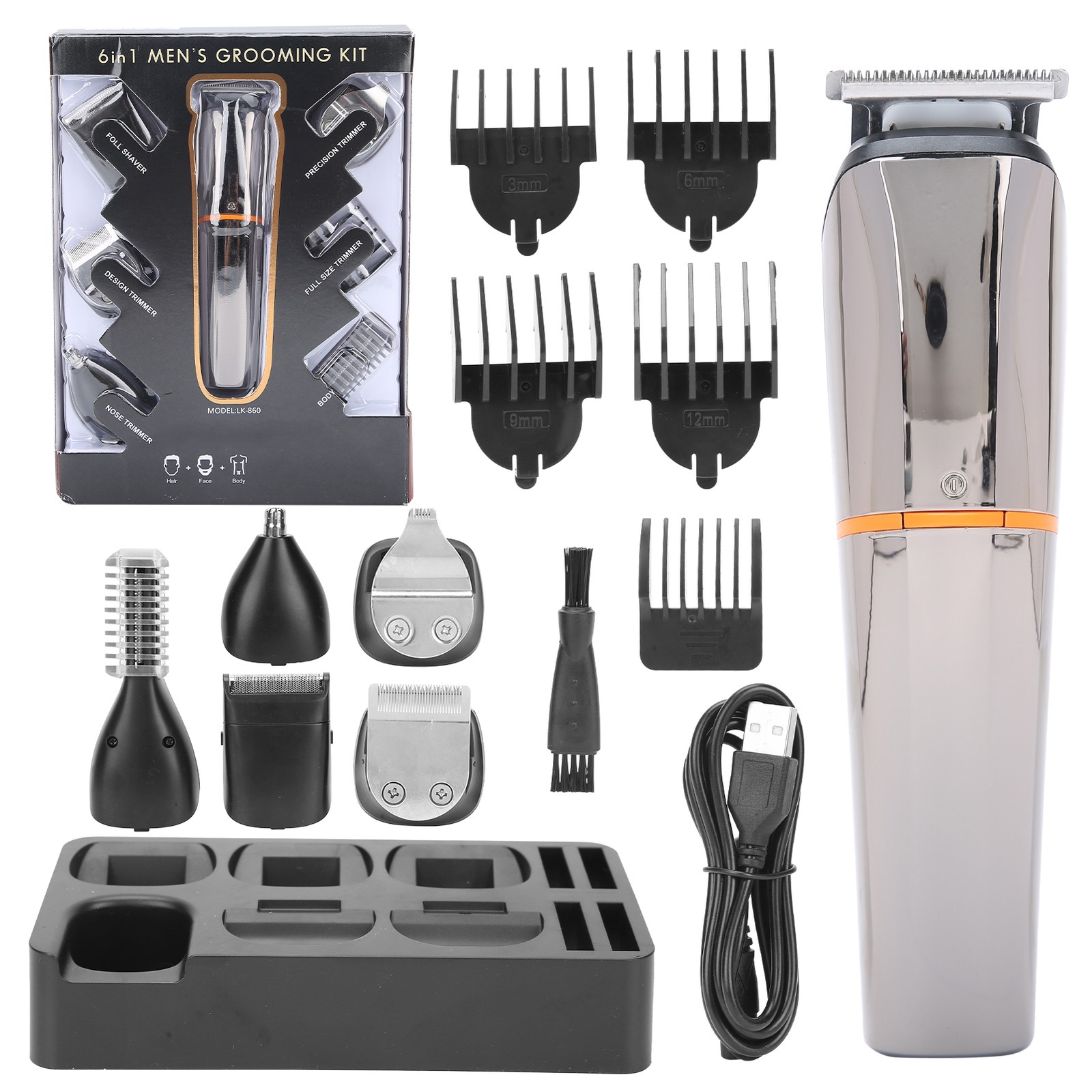 6-IN-1 Men's Hair Clipper Set Beard Body Hair Trimmer Nose Trimmer Kit