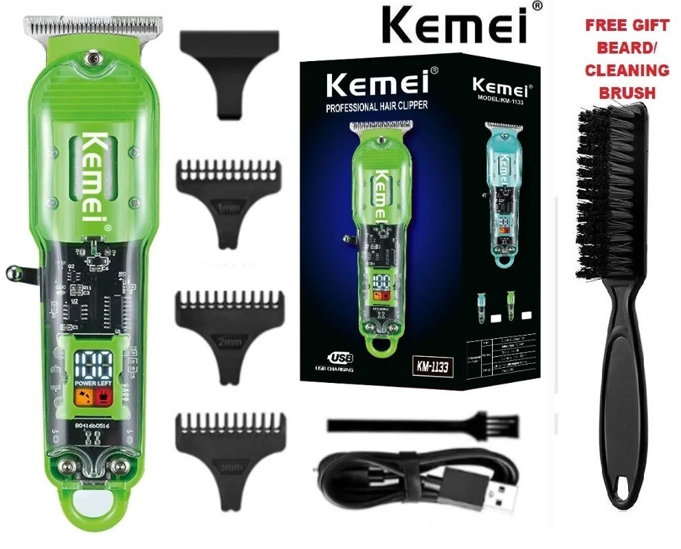 Kemei KM-1133 Mens Professional Hair Clipper Green Transparent Body USB Charging