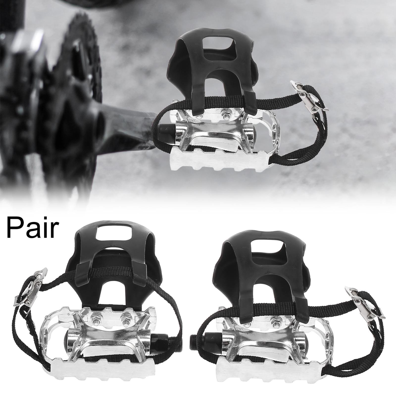 Bike Pedals with Toe Clips and Straps Bicycle Pedals for Indoor Riding Parts Pair