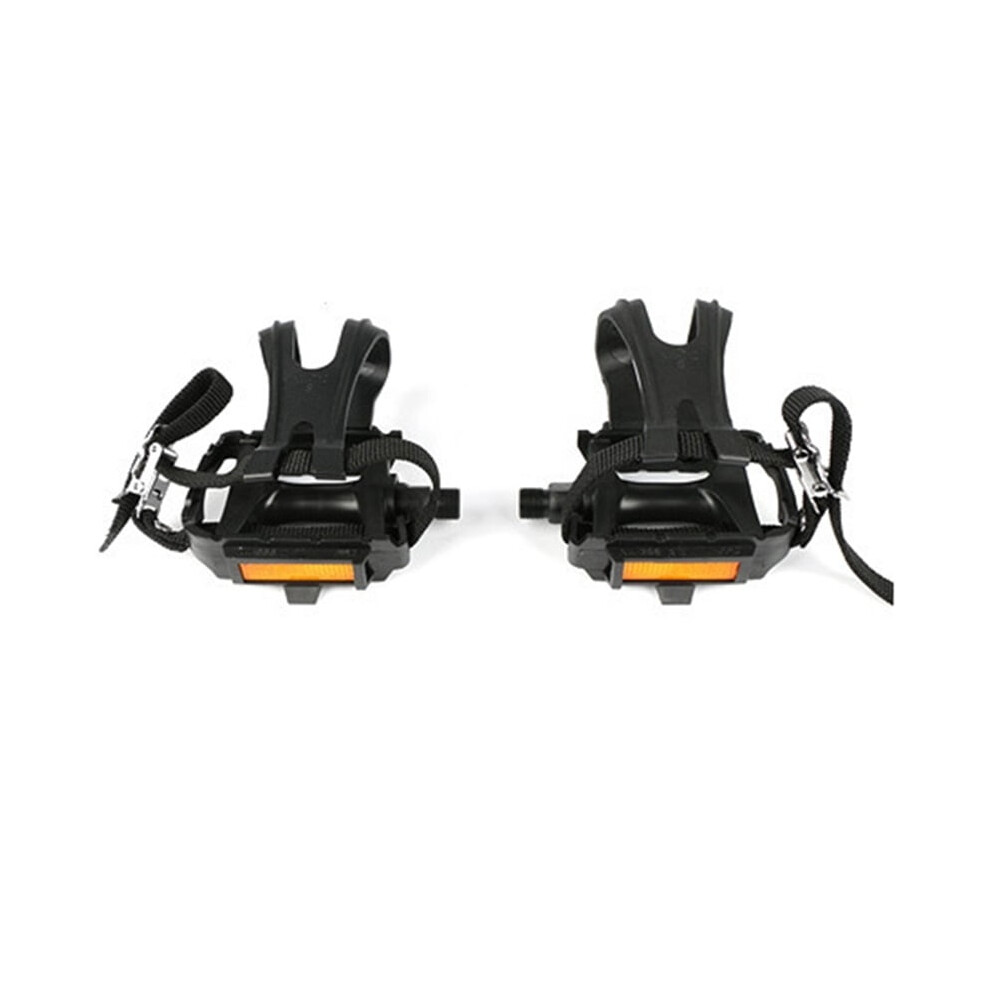 Bicycle Cycling Bike Pedals with Clips and Straps, Plastic Bicycle Pedals for Spin Bike, Exercise Bike, MTB and Road Bike, 9/16 Inch