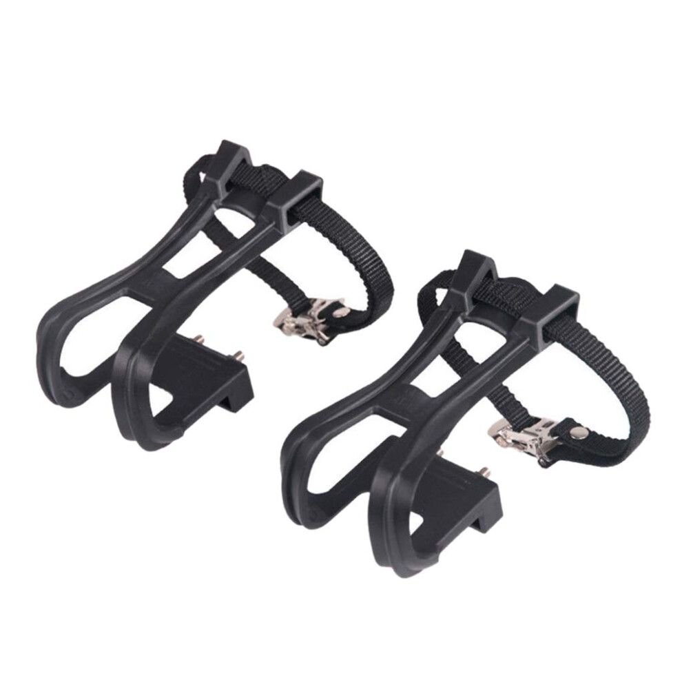 1 Pair Bike Pedals with Toe Clip and Strap, Bicycle Toe Clips Cages, Bicycle Pedal Foot Cover Plastic Bike Pedals for MTB Road Bikes and Mountain Bikes (COLOR:Black)