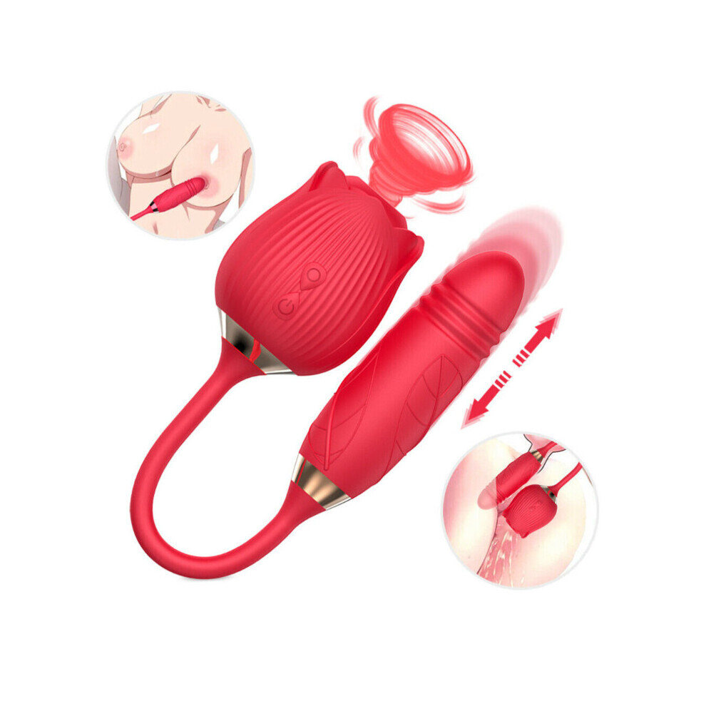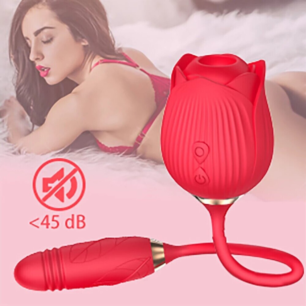 Rose Vibrator Clit G-spot Sucking Thrusting Dildo Bullet Women Sex Toy