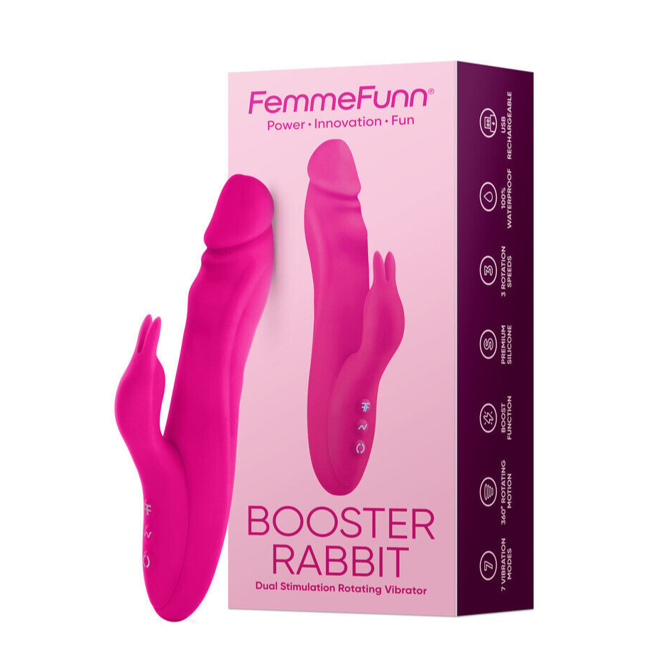 FemmeFunn Booster Rabbit Vibrator Pink Silicone Clitoral GSpot Rotating Massager
