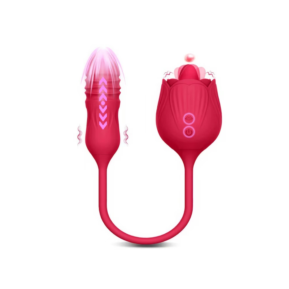 Rose-Shaped Clitoral Tongue Stimulator with G-Spot Vibration - 3-in-1 Licking, Thrust & Vibration, 10 Suction & 10 Vibration Modes, Waterproof, Red