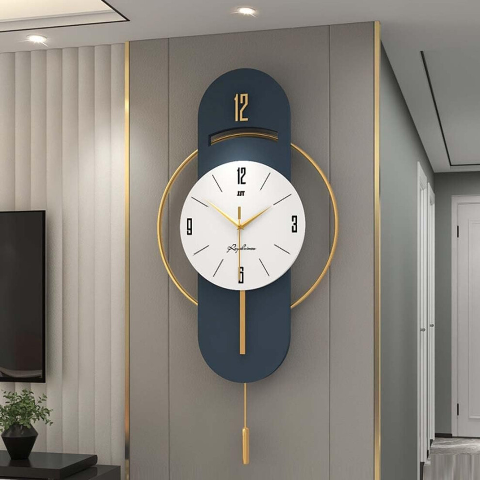 Blue and Gold Wall Clock, Large Silent Pendulum Clock for Living Room, Midnight Blue Decorative Clock 42x84cm